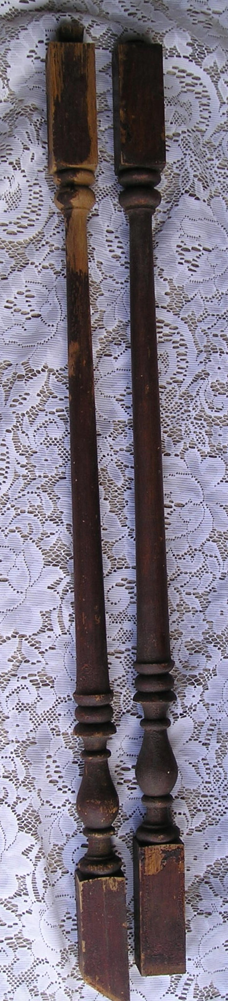 Underneath the darkness is beautiful oak! Balusters range in height from 30 1/4″-59 1/4″.