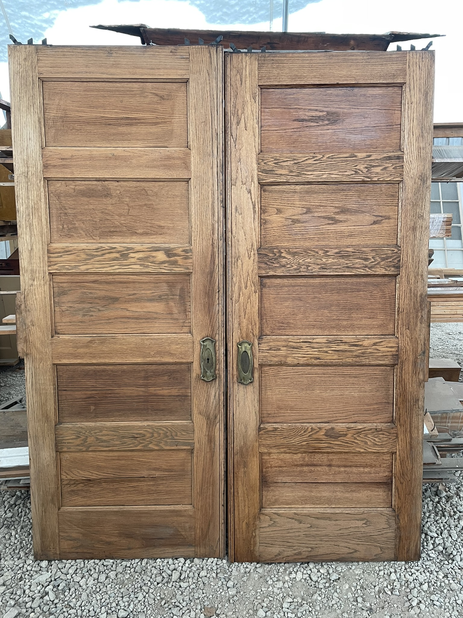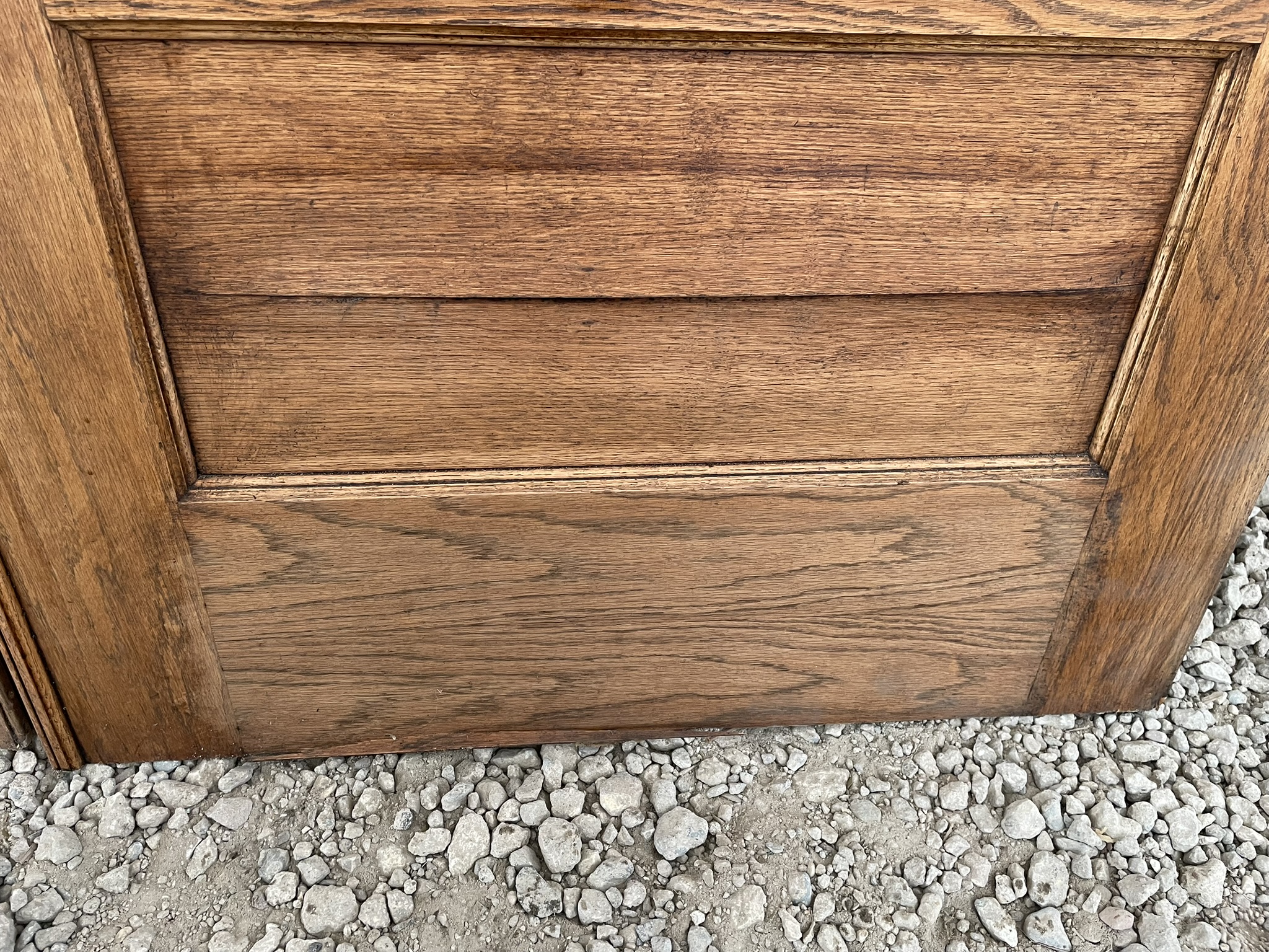 A pair of oak pocket doors which have been stripped and are ready for whatever finish you’d prefer! Bottom panels are rippled and there is some repairable veneer damage at the bottom. Despite this, they still make for a wonderful piece!