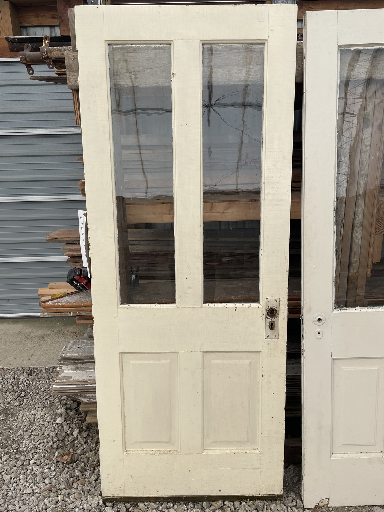 D7419 is 32″ w x 80 1/4″ h x 1 3/4″ d. One glass pane is cracked. $165.